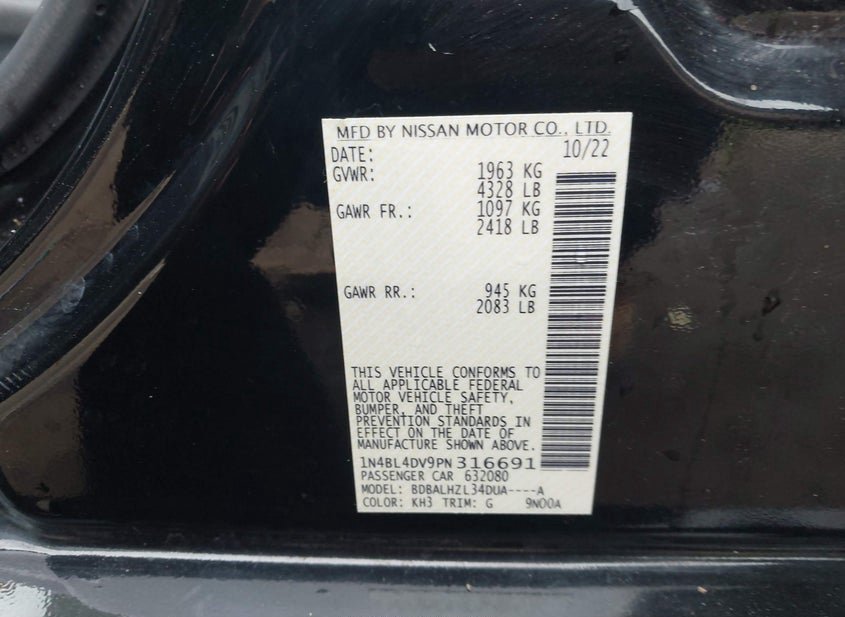 VIN: 1N4BL4DV9PN316691 · Oklahoma City, OK, 73121 · OK Clear