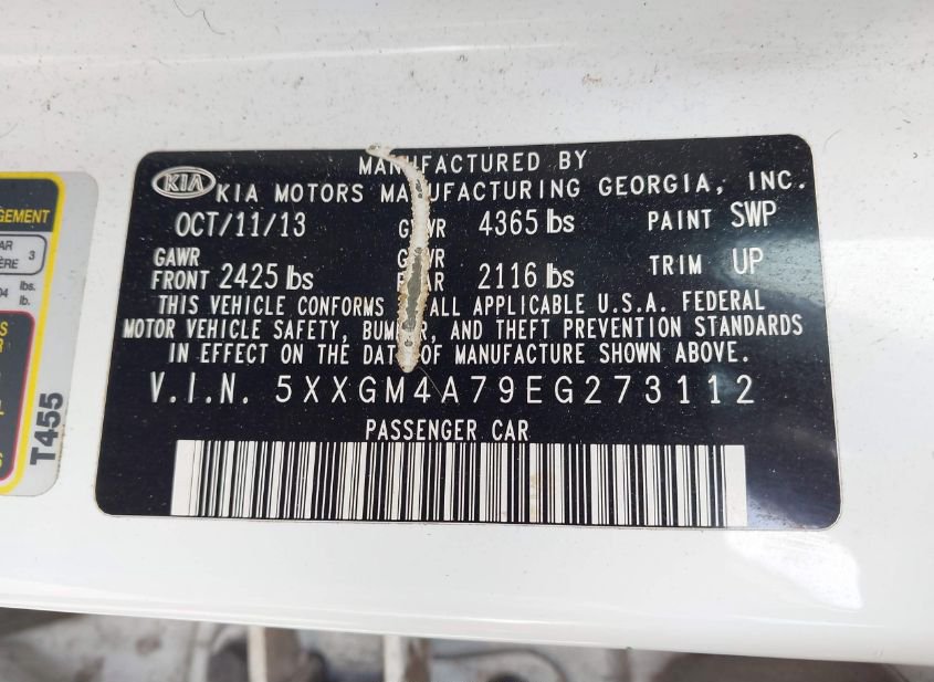 VIN: 5XXGM4A79EG273112 · SAN ANTONIO, TX, 78224 · TX SALVAGE