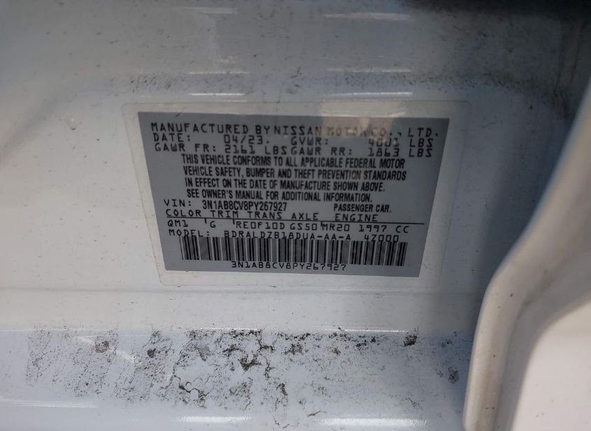{"StockHash":"44387347","SellingBranch":"CHARLOTTE (NC)","VINStatus":"3N1AB8CV8PY267927 (OK)","VehicleScore":"32","Vehicle":"AUTOMOBILE","VehiclesVehicleLocation":"AT THE BRANCH","AuctionDateTime":"4/20/2026 1:30:00 PM +00:00","Lane":"AVAILABLE TWO DAYS BEFORE SALE","Aisle":"AVAILABLE TWO DAYS BEFORE SALE"}