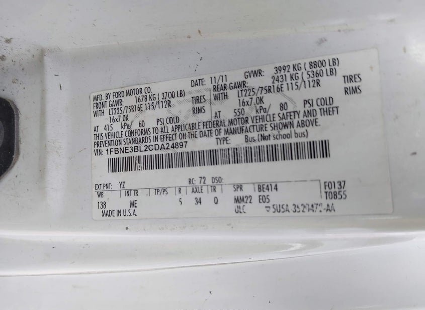 VIN: 1FBNE3BL2CDA24897 · GRAND PRAIRIE, TX, 75050 · TX ORIGINAL