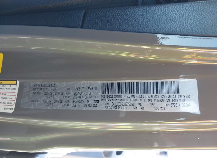 VIN: 1C4HJXDG6JW272339 · CHARLOTTE, NC, 28206 · NC SALVAGE