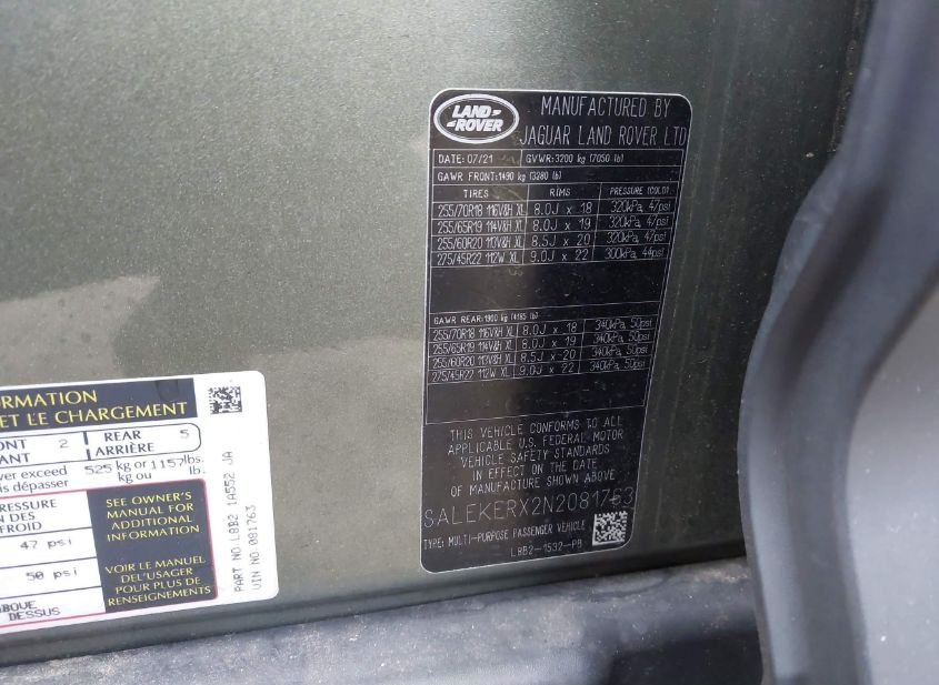 VIN: SALEKERX2N2081763 · Winder, GA, 30680 · GA Salvage