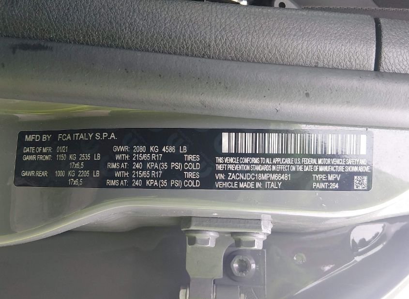 VIN: ZACNJDC18MPM66481 · TURNERSVILLE, NJ, 08012 · NJ SALVAGE