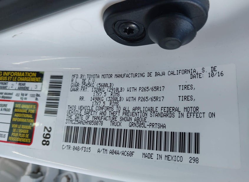 VIN: 3TMCZ5AN2HM058078 · ASHLAND, VA, 23005 · VA SALVAGE
