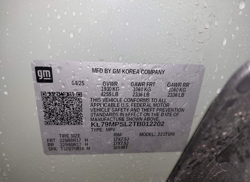 VIN: KL79MPSL2TB012202 · HIGH POINT, NC, 27263 · NC SALVAGE
