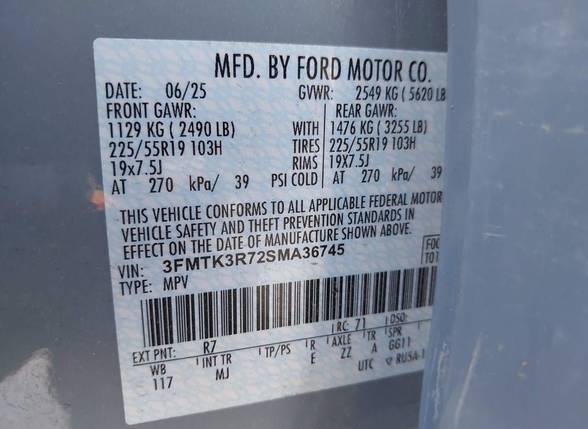 VIN: 3FMTK3R72SMA36745 · North Hollywood, CA, 91605 · CA Salvage