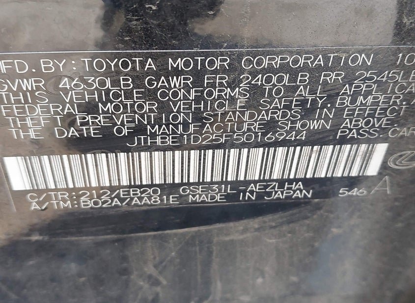 VIN: JTHBE1D25F5016944 · Wilmer, TX, 75172 · TX Salvage