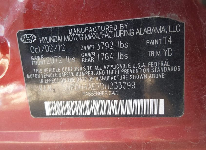 2013 HYUNDAI ELANTRA GLS