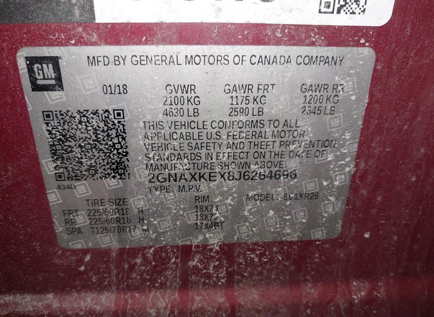 VIN: 2GNAXKEX8J6264696 · APPLETON, WI, 54914 · WI CLEAR