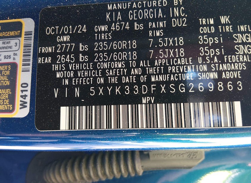 VIN: 5XYK33DFXSG269863 · ANAHEIM, CA, 92806 · CA SALVAGE