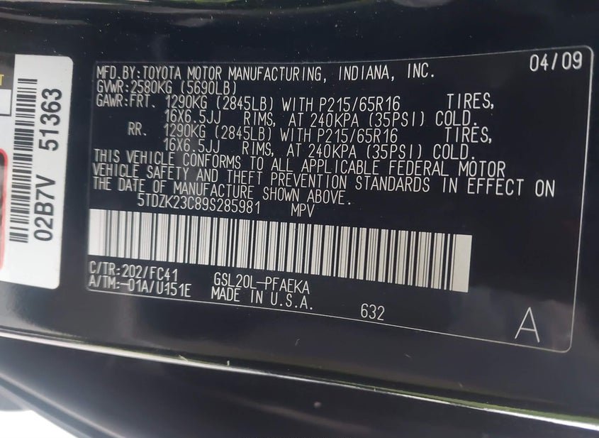 5TDZK23C89S285981