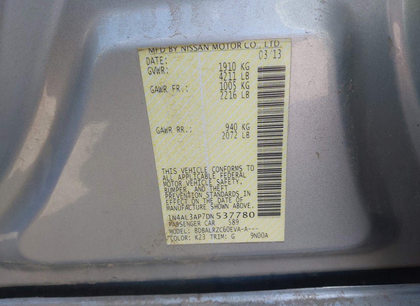 VIN: 1N4AL3AP7DN537780 · Gorham, ME, 04038 · ME Salvage