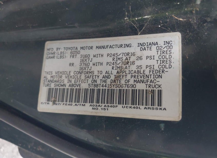 VIN: 5TBBT4415YS067690 · ASHLAND, VA, 23005 · VA CLEAR UNABLE TO GE A DUPLICATE