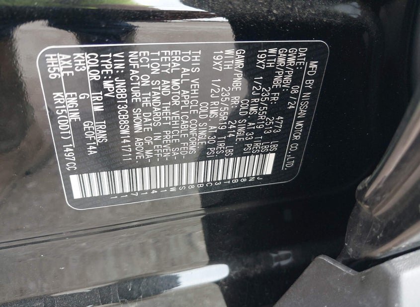 VIN: JN8BT3CB8SW141711 · WILMER, TX, 75172 · TX ORIGINAL