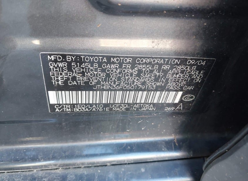 VIN: JTHBN36F050179153 · Ashland, VA, 23005 · VA Clear