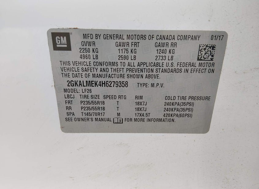 VIN: 2GKALMEK4H6279358 · COLUMBUS, OH, 43223 · OH SALVAGE