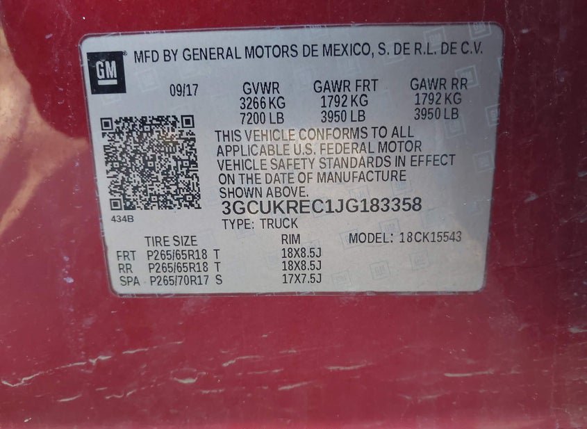 VIN: 3GCUKREC1JG183358 · DUNDALK, MD, 21222 · MD SALVAGE - GREATER THAN 75%