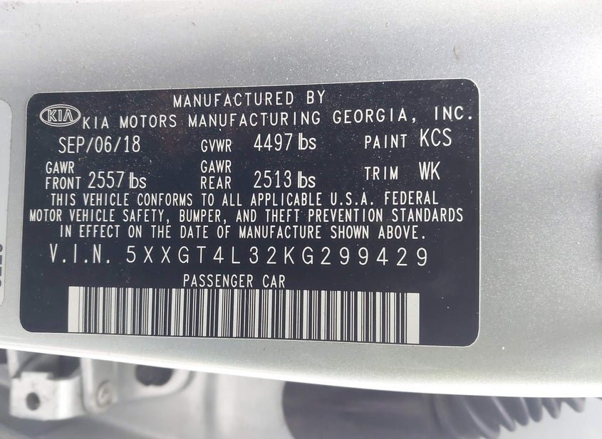 VIN: 5XXGT4L32KG299429 · Conshohocken, PA, 19428 · PA Salvage