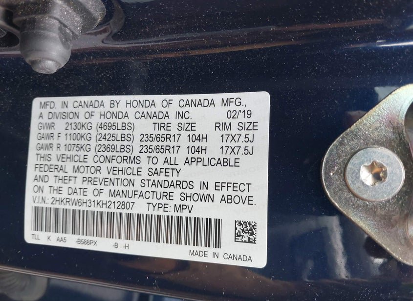 2HKRW6H31KH212807