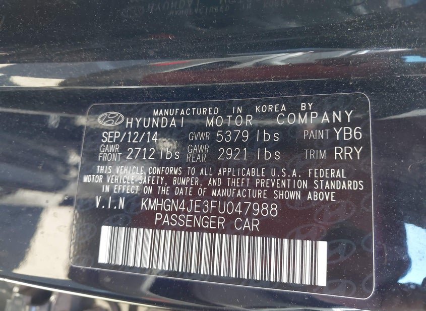 VIN: KMHGN4JE3FU047988 · PHOENIX, AZ, 85041 · AZ SALVAGE