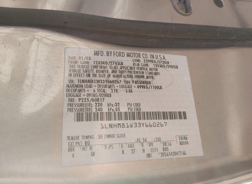 VIN: 1LNHM81W33Y660267 · SPRINGFIELD, NE, 68059 · NE SALVAGE