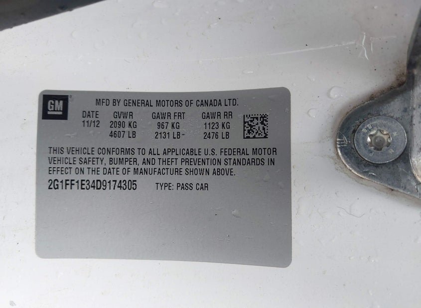VIN: 2G1FF1E34D9174305 · Florence, TX, 76527 · TX Salvage