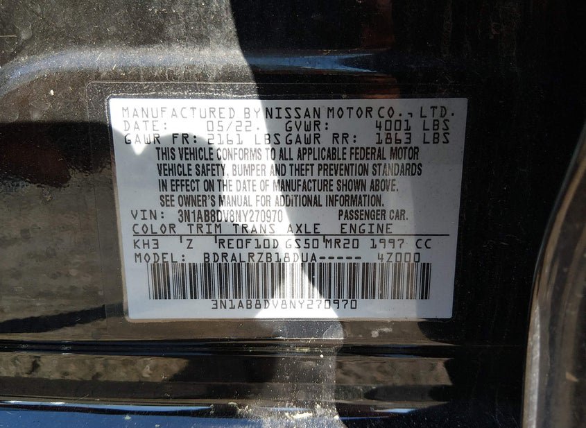 VIN: 3N1AB8DV8NY270970 · NASHVILLE, TN, 37218 · TN SALVAGE