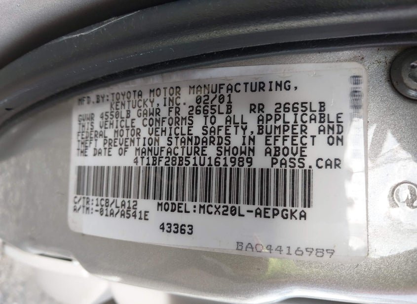 VIN: 4T1BF28B51U161989 · PORT MURRAY, NJ, 07865 · NJ SALVAGE