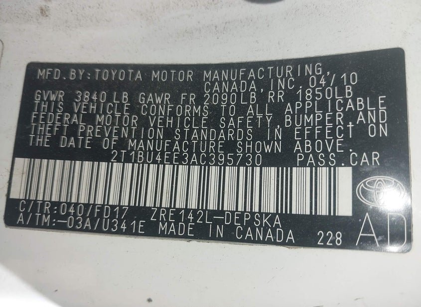 2T1BU4EE3AC395730