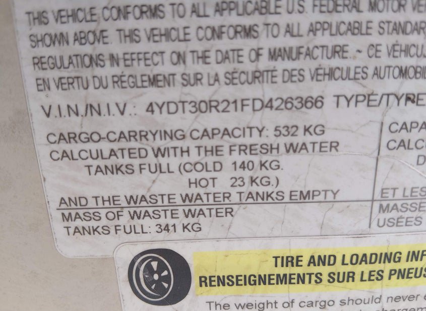 {"Wheels Missing":"0.00","Number Of Awnings":"1.00","Length":"30","Number Of Slideouts":"2","Stored":"Offsite"}