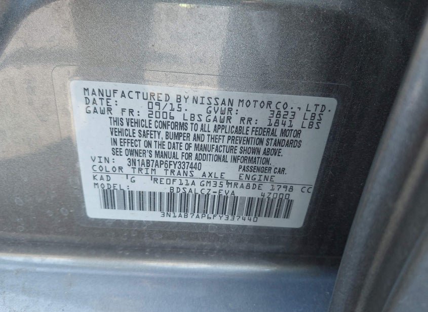 VIN: 3N1AB7AP6FY337440 · PERRIS, CA, 92571 · CA SALVAGE CERTIFICATE