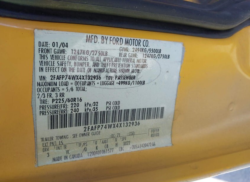 VIN: 2FAFP74WX4X132936 · Florence, TX, 76527 · TX Clear POSSIBLE ROLLBACK HISTORY