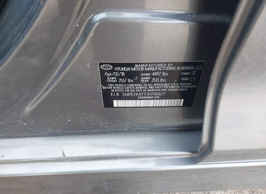 VIN: 5NPE24AF9JH700677 · Sussex, WI, 53089 · WI Clear