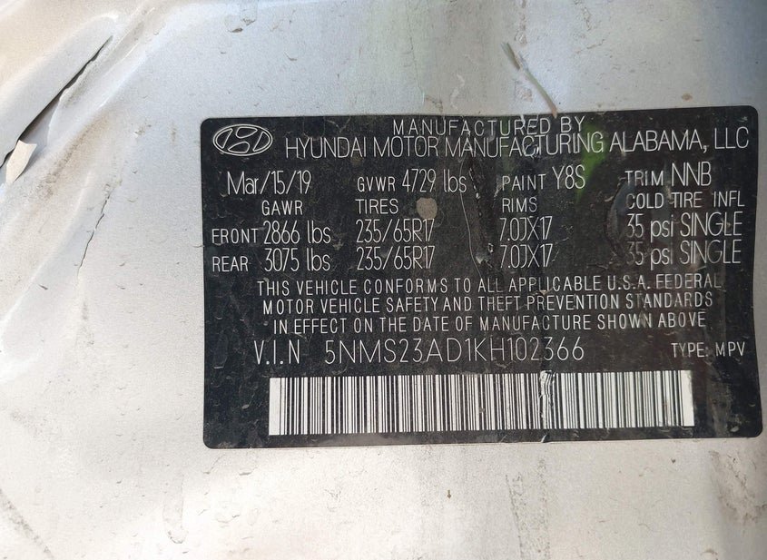 VIN: 5NMS23AD1KH102366 · PHOENIX, AZ, 85041 · AZ SALVAGE