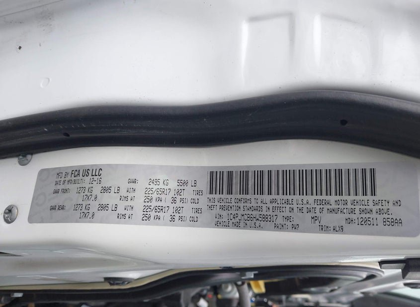 VIN: 1C4PJMCB6HW588317 · Buffalo, NY, 14207 · NY Mv-907A