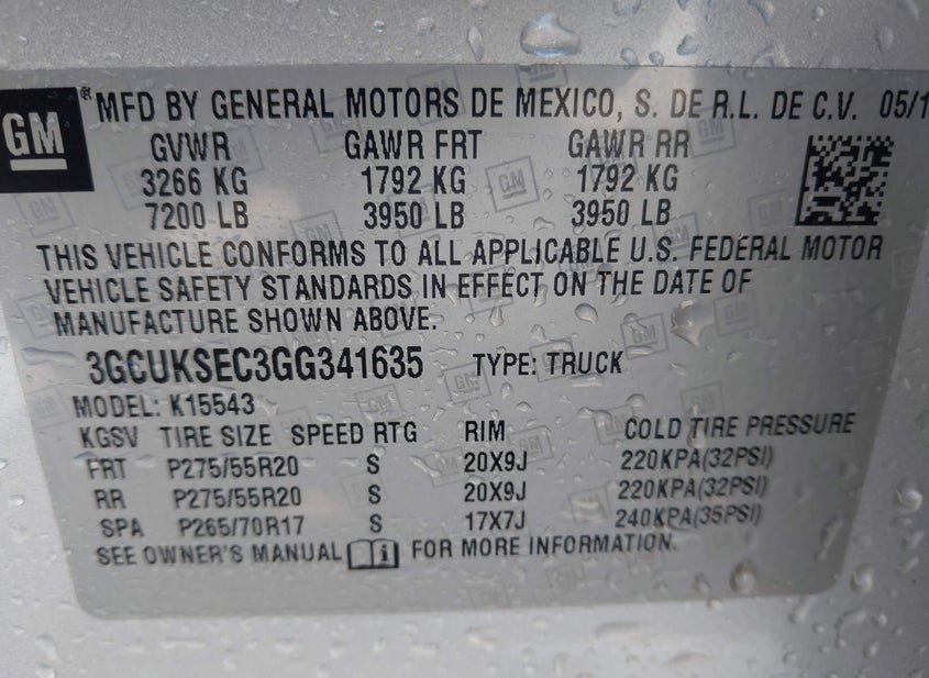 VIN: 3GCUKSEC3GG341635 · Scott, AR, 72142 · AR Clear