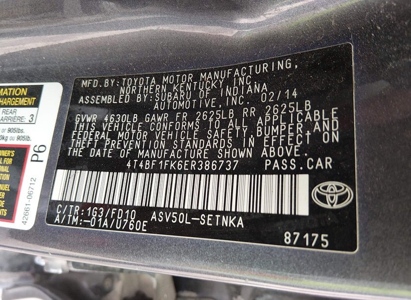 VIN: 4T4BF1FK6ER386737 · Springfield, NE, 68059 · NE Certificate Of Title