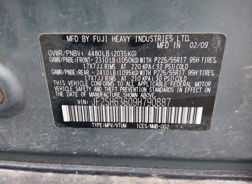 VIN: JF2SH63609H790887 · BUCKHANNON, WV, 26201 · WV SALVAGE