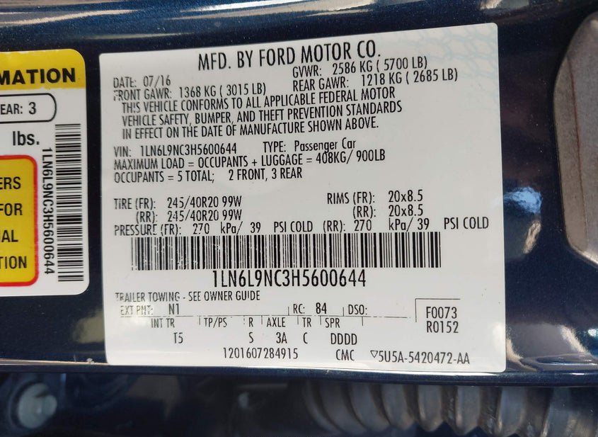 VIN: 1LN6L9NC3H5600644 · Nashville, TN, 37218 · TN Salvage
