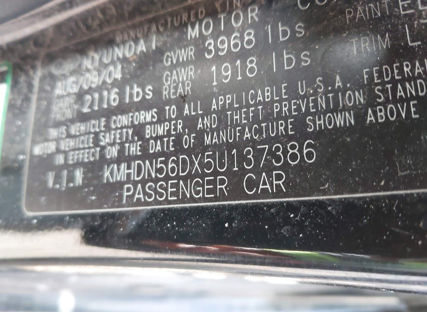 VIN: KMHDN56DX5U137386 · Belleville, MI, 48111 · MI Clear