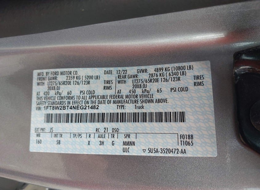 VIN: 1FT8W2BT4NEG21482 · Loganville, GA, 30052 · GA Salvage