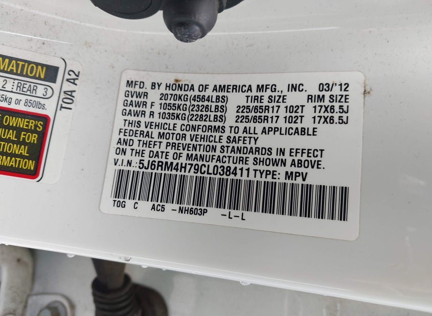 VIN: 5J6RM4H79CL038411 · EUGENE, OR, 97402 · OR SALVAGE