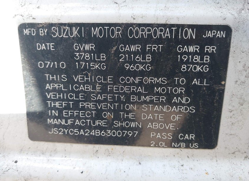 VIN: JS2YC5A24B6300797 · Riverside, RI, 02915 · MA Clear