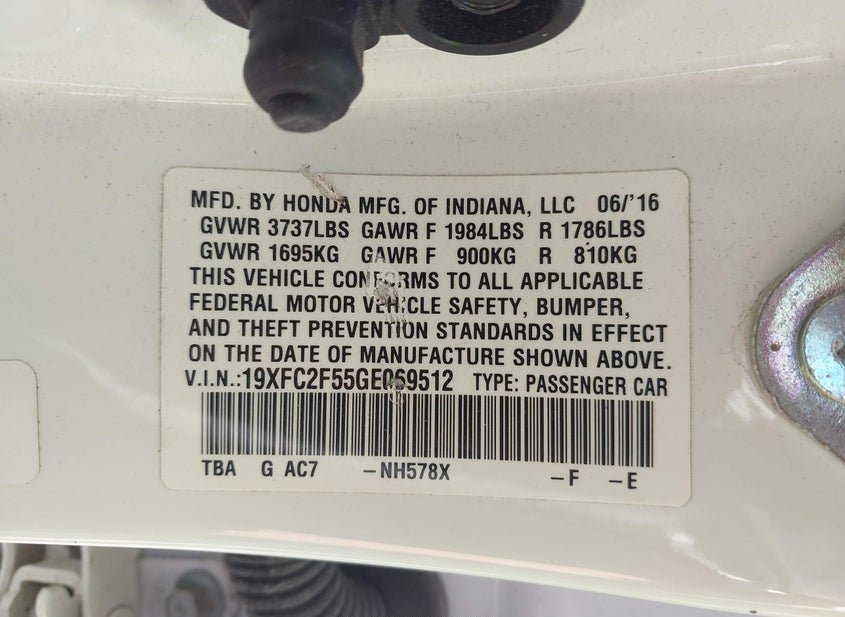 VIN: 19XFC2F55GE069512 · Nashville, TN, 37218 · TN Salvage