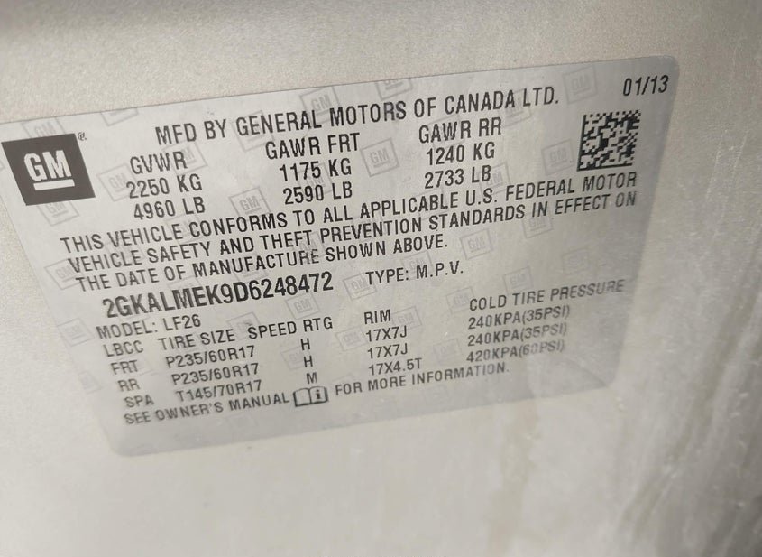 VIN: 2GKALMEK9D6248472 · DAVENPORT, IA, 52802 · IA REGULAR CERTIFICATE