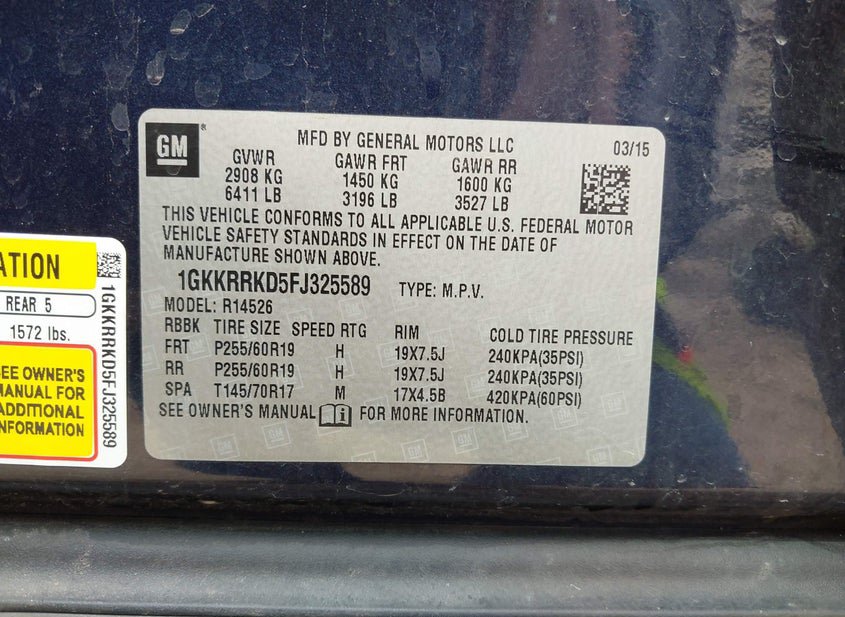 VIN: 1GKKRRKD5FJ325589 · South Bend, IN, 46619 · IN Clear