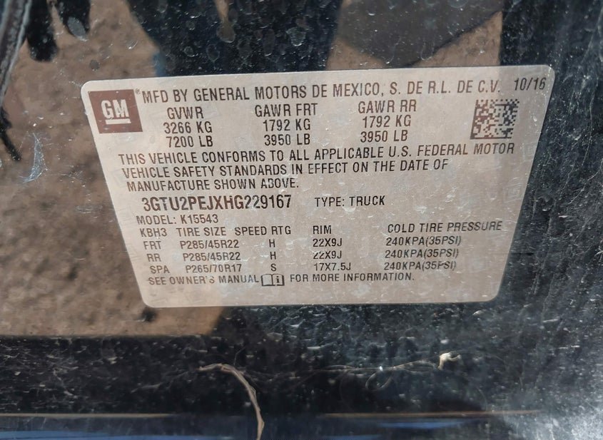 VIN: 3GTU2PEJXHG229167 · Corpus Christi, TX, 78405 · TX Salvage 113000 OWNER ATTESTED