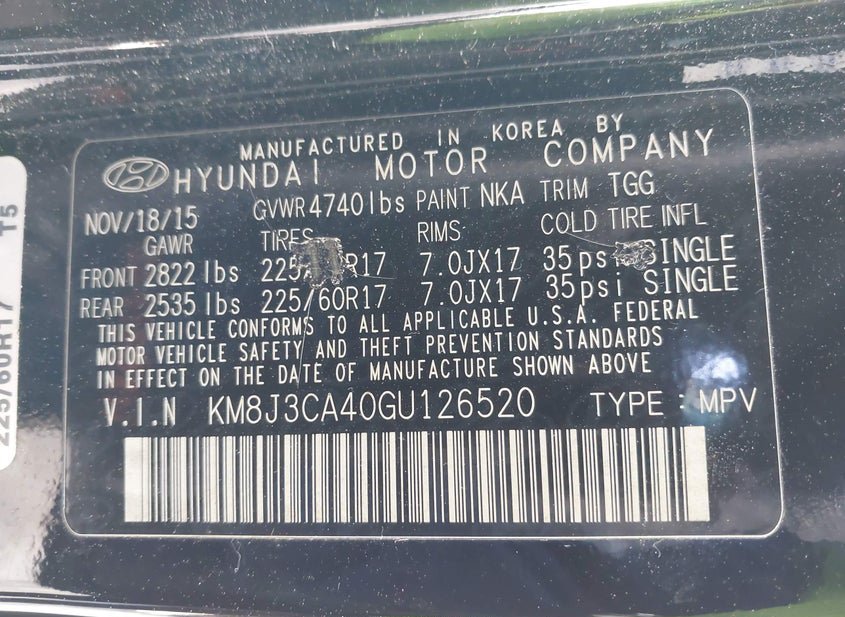VIN: KM8J3CA40GU126520 · East Taunton, MA, 02718 · MA Clear