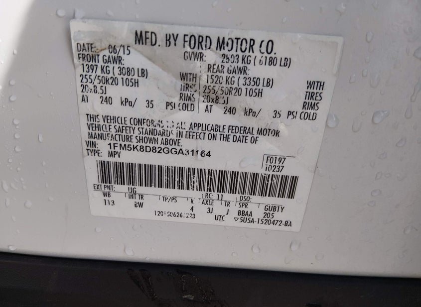 VIN: 1FM5K8D82GGA31164 · Caseyville, IL, 62232 · MO Salvage
