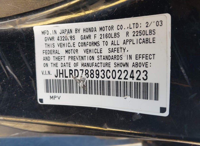 VIN: JHLRD78893C022423 · Bay Point, CA, 94565 · CA Clear - Dealer Only DMV $209